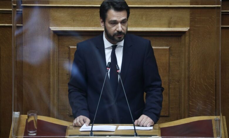 Ο βουλευτής της Νέας Δημοκρατίας Τάσος Μπαρτζώκας στο βήμα της ολομέλειας της Βουλής
