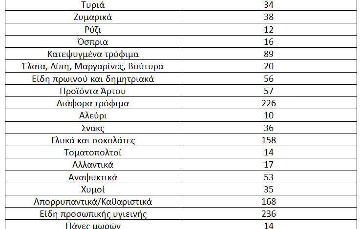Ενδεικτικά αναφέρεται ότι στις μειώσεις των τιμών προϊόντων περιλαμβάνονται 1.074 κωδικοί τροφίμων και 1.106 κωδικοί μη τροφίμων.