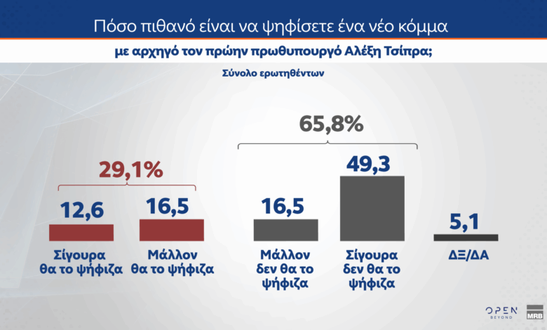 Ανάμεσα στους ψηφοφόρους που προσδιορίζονται ως κεντρώοι/κεντροαριστεροί ή αριστεροί, το 52,9% απαντά πως σίγουρα ή μάλλον δεν θα ψήφιζε ένα νέο κόμμα υπό τον Τσίπρα, ενώ το 43,7% πως μάλλον ή σίγουρα θα ψήφιζε.