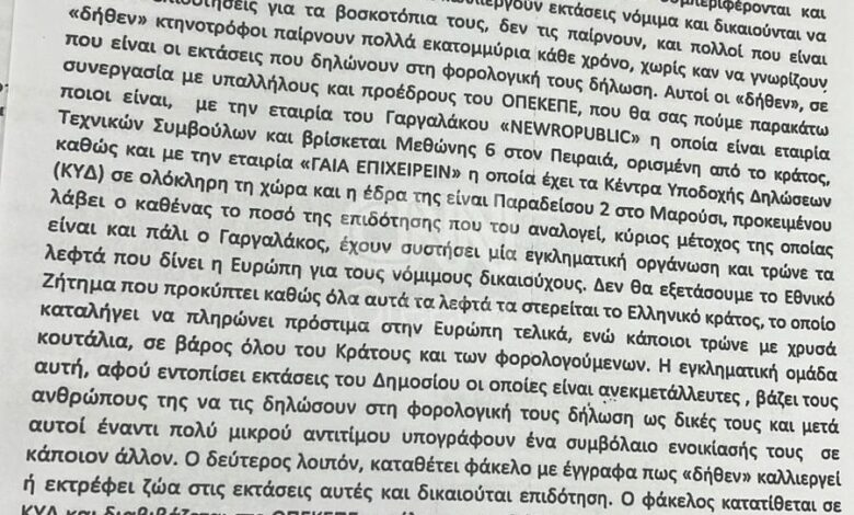 Αποκάλυψη: Η ανώνυμη επιστολή που πυροδότησε την έρευνα για τον ΟΠΕΚΕΠΕ – «Βρωμάει η κατάσταση»