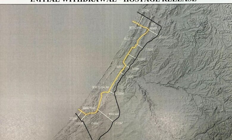 Η «Κίτρινη Γραμμή» που οριοθετεί την υποχώρηση των ισραηλινών στρατευμάτων στην πρώτη φάση της εκεχειρίας.
