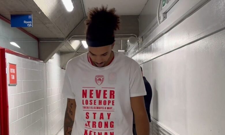 Πιο συγκεκριμένα, οι παίκτες του Ολυμπιακού εμφανίστηκαν στο γήπεδο με μπλουζάκια που έγραφαν “Ποτέ μη χάσεις την ελπίδα. Υπάρχει πάντα τρόπος. Μείνει δυνατός Κίναν! Ας το κάνουμε για τον Έβανς”.