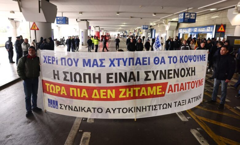 Από την διαμαρτυρία των ταξί στο αεροδρόμιο Ελευθέριος Βενιζέλος
