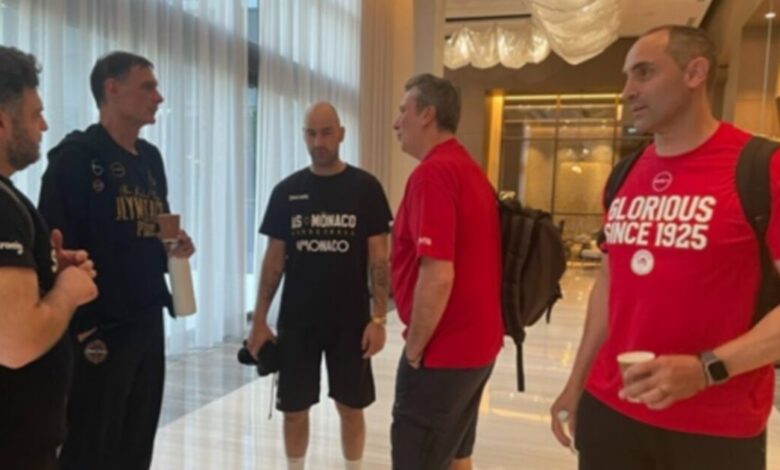 Βασίλης Σπανούλης και Γιώργος Μπαρτζώκας αγκαλιάστηκαν και τα είπαν στο Άμπου Νταμπι πριν το Ολυμπιακός