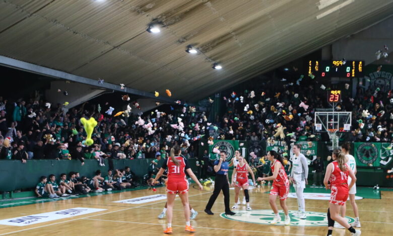 Λίγο πριν γίνει το τζάμπολ της αναμέτρησης ανάμεσα στον Παναθηναϊκό και τον Πανσερραϊκό για την Α1 μπάσκετ γυναικών οι φίλοι του «τριφυλλιού» γέμισαν με λούτρινα κουκλάκια το παρκέ του κλειστού της Λεωφόρου.
