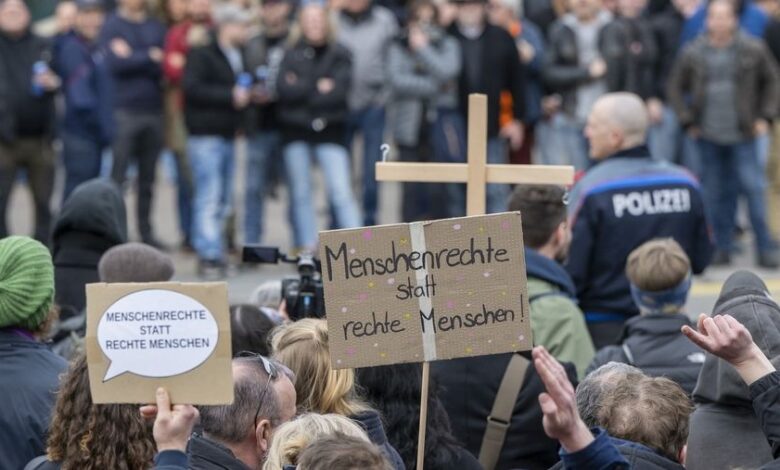 Περίπου 250 άτομα διαδήλωσαν το Σάββατο (22/2) κατά της ακροδεξιάς στο Αϊνζίντελν της Ελβετίας, τόπο κατοικίας της αρχηγού της Εναλλακτικής για την Γερμανία (AfD) Αλίς Βάιντελ.Η ατμόσφαιρα ήταν τεταμένη, ενώ υπήρξαν προπηλακισμοί μεταξύ διαδηλωτών και αντιδιαδηλωτών.