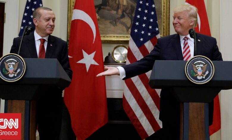 Μάλιστα ο ρόλος του Ερντογάν δεν σταμάτησε εκεί. Ήταν με δική του παρέμβαση κα του πρίγκιπα Μπιν Σαλμάν της Σαουδικής Αραβίας που πραγματοποιήθηκε την Τετάρτη (14/5) η συνάντηση του Αμερικανού προέδρου με τον νέο ηγέτη της Συρίας Αχμέντ Αλ Σαράα. Ο Ερντογάν μπορεί να μην ήταν φύσει παρών, αλλά συμμετείχε τηλεφωνικά.