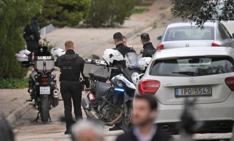 Αστυνομικοί έξω από την οικεία που διαπράχθηκε το έγκλημα στην οδό Γυθείου στην Γλυφάδα
