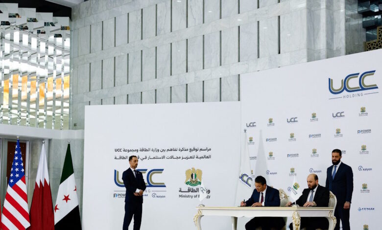 Η Συρία υπογράφει ενεργειακή συμφωνία 7 δισ. δολαρίων με μια κοινοπραξία εταιριών από τις ΗΠΑ, το Κατάρ και την Τουρκία, για την αποκατάσταση του τομέα ηλεκτρικής ενέργειας που καταστράφηκε από τον πόλεμο.