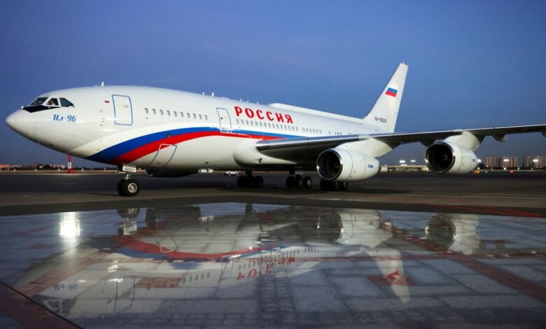 Το ρωσικό προεδρικό αεροσκάφος Ilyushin IL-96 που μεταφέρει τον Βλαντιμίρ Πούτιν.
