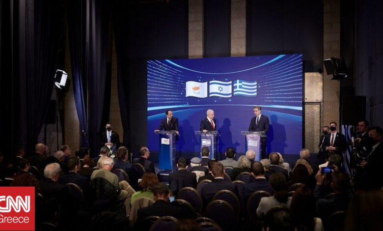 «Ο Νετανιάχου, ο Μητσοτάκης και ο ηγέτης της ‘Ελληνοκυπριακής Διοίκησης’ Νίκος Χριστοδουλίδης συναντήθηκαν τη Δευτέρα σε τριμερή σύνοδο κορυφής στη Δυτική Ιερουσαλήμ.
