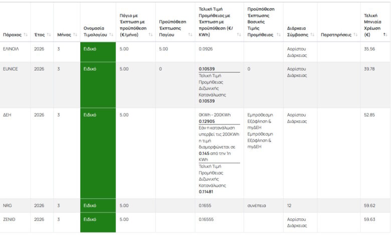 Προηγήθηκε η ανακοίνωση της ΔΕΗ, που βρίσκεται πλέον στα 12,9 λεπτά στην πρώτη ζώνη χρέωσης για το τιμολόγιο Γ1/Ν1, από 13,9 λεπτά το Φεβρουάριο.