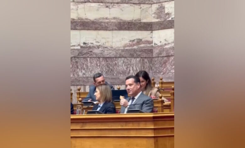 Η Ζωή Κωνσταντοπούλου δημοσίευσε το βίντεο με τον Άδωνι Γεωργιάδη να τρώει κρακεράκια στη Βουλή