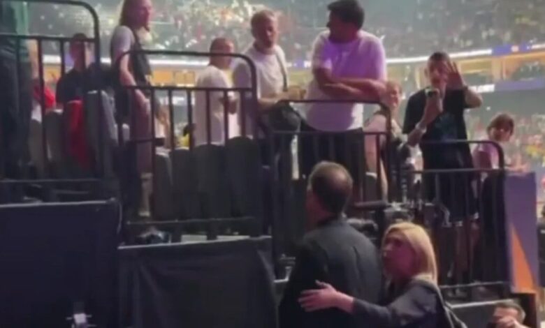 Ο προπονητής των Πειραιωτών πέρασε πάνω από τα προστατευτικά και κινήθηκε προς το μέρος του νεαρού οπαδού, ρωτώντας τον “η μητέρα σου το ξέρει ότι είσαι εδώ”.