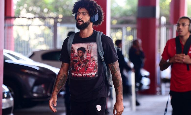Ο παίκτης του Ολυμπιακού έφτασε στο ΣΕΦ για το ντέρμπι με τον Παναθηναϊκό, με ιδιαίτερο μπλουζάκι
