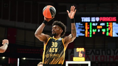 Διεκδίκηση της μπάλας σε αγώνα Ολυμπιακός – ΠΑΟΚ από της σεζόν 2023-24 / ΜΑΡΙΛΙΑ ΒΑΣΙΛΑΚΟΠΟΥΛΟΥ / EUROKINISSI