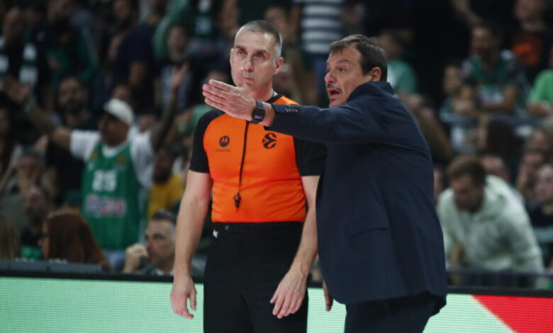 Ο διαιτητής Λοτερμόζερ με τον Αταμάν του Παναθηναϊκού (ΣΤΕΛΙΟΣ ΣΤΕΦΑΝΟΥ / EUROKINISSI)