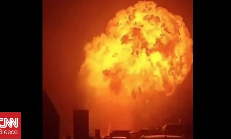 Βίντεο από διερχόμενους οδηγούς δείχνουν το τεράστιο μανιτάρι καπνού και τις φλόγες που προκλήθηκαν μετά την έκρηξη.
