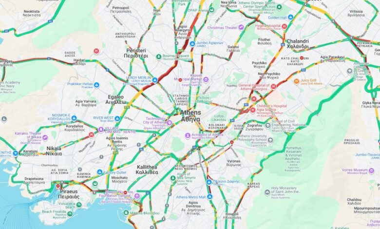Κίνηση: Στο «κόκκινο» Κηφισός και κέντρο – Καθυστερήσεις 30 λεπτά στην Αττική Οδό