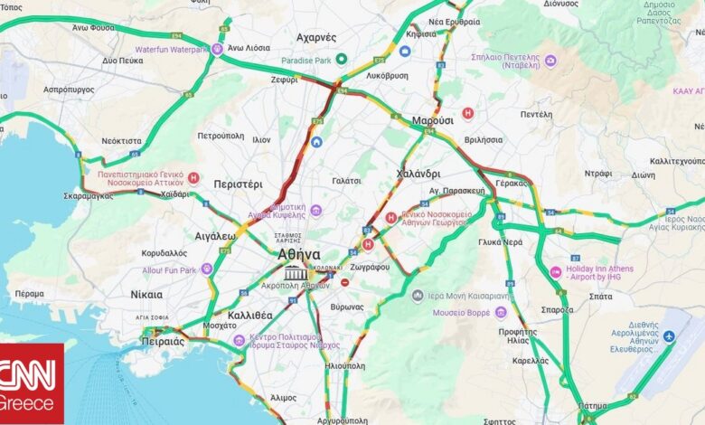 Στο «κόκκινο» είναι κατά διαστήματα και η Κηφισίας και στα δύο ρεύματα από την Κατεχάκη μέχρι το Χαλάνδρι.