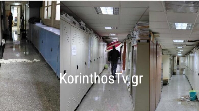 Σύμφωνα με το Korinthostv το Δικαστικό Μέγαρο Κορίνθου μετατράπηκε σε «λίμνη», με το νερό να εισβάλλει στο εσωτερικό του κτιρίου.