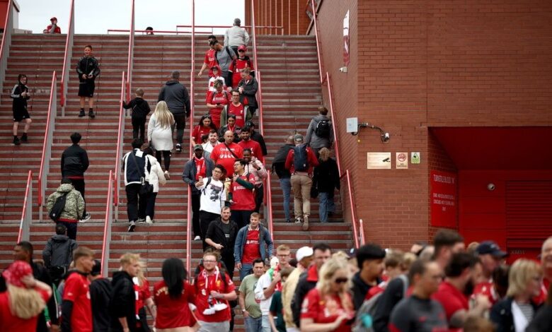 Οπαδοί της Λίβερπουλ έξω από το «Άνφιλντ»