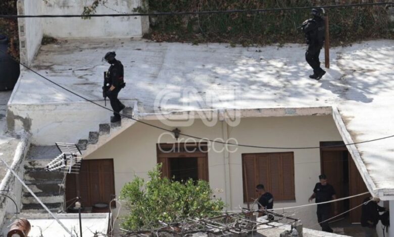 Μάλιστα, όπως καταγράφεται και στις παρακάτω φωτογραφίες του CNN GRRECE, αστυνομικοί κάνουν έρευνες «πόρτα – πόρτα» στα σπίτια του χωριού και σε ταράτσες, ενώ εξετάζονται και πιθανά σημεία διαφυγής των δραστών μέσα από το φαράγγι που βρίσκεται κοντά στο χωριό. Μέχρι στιγμής δεν έχει εντοπιστεί κανένας από τους καταζητούμενους, ούτε το οπλοστάσιο που εκτιμάται ότι κρύβεται στην περιοχή.