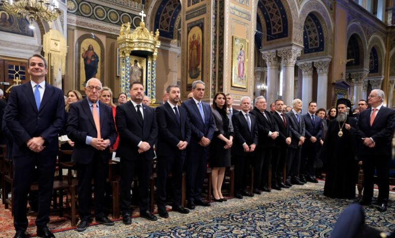 Μητσοτάκης, Τασούλας, Κακλαμάνης και Ανδρουλάκης στη δοξολογία στη Μητρόπολη για τη νέα χρονιά