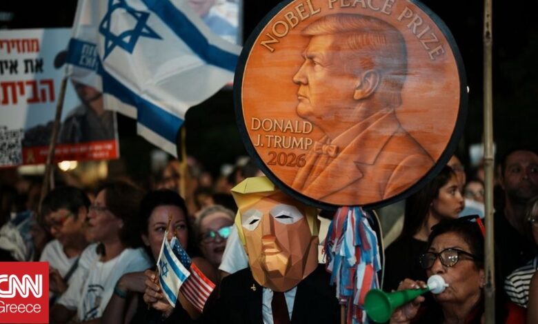 Στο Τελ Αβίβ, πολίτες που συγκεντρώθηκαν με την ελπίδα αυτή να είναι η τελευταία φορά, στην πλατεία Ομήρων, χειροκρότησαν τον πρόεδρο των ΗΠΑ Ντόναλντ Τραμπ, κάποιοι άλλοι, αποδοκίμασαν τον πρωθυπουργό Μπενιαμίν Νετανιάχου, ενώ ο απεσταλμένος των ΗΠΑ Στιβ Γουίτκοφ και ο γαμπρός του Τραμπ, Τζάρεντ Κούσνερ και η κόρη του Ιβανκα Τραμπ, απευθύνθηκαν στο συγκεντρωμένο πλήθος.