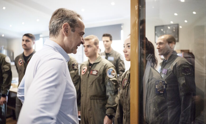 Ο Κυριάκος Μητσοτάκης στα «γεράκια» της 111ης Πτέρυγας Μάχης