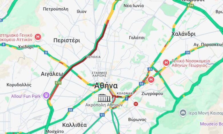 Κλειστές αυτήν την ώρα είναι η μεσαία λωρίδα και η λωρίδα εξόδου προς την Αχαρνών.