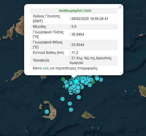 Νέος σεισμός 5 Ρίχτερ στην Αμοργό – Δεύτερος μεγαλύτερος των τελευταίων ημερών