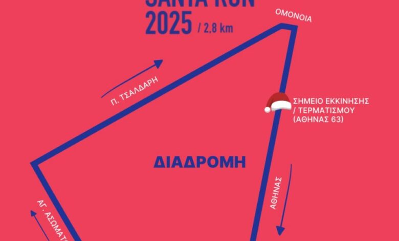Ο Δήμος Αθηναίων ετοιμάζεται να ντυθεί στα κόκκινα και να υποδεχθεί το Athens Santa Run 2025, τη μεγάλη γιορτή αθλητισμού, χαράς και αλληλεγγύης, που θα πραγματοποιηθεί την Κυριακή 21 Δεκεμβρίου, στο κέντρο της πόλης.