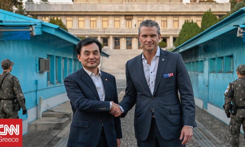 Tην αποστρατιωτικοποιημένη ζώνη στα σύνορα μεταξύ Βόρειας και Νότιας Κορέας επισκέφθηκε σήμερα Δευτέρα 3/11 ο επικεφαλής του Πενταγώνου Πιτ Χέγκσεθ. Αυτή είναι η πρώτη επίσκεψη που πραγματοποιεί Αμερικανός υπουργός Άμυνας στην περιοχή εδώ και οκτώ χρόνια.