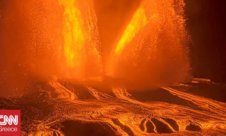 Λάβα σε ύψος 400 και πλέον μέτρων εκτοξεύει το ηφαίστειο Κιλαουέα της Χαβάης το οποίο εξερράγη για 35η φορά από τον Δεκέμβριο του 2024.
