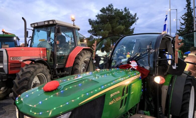 Οι αγρότες στόλισαν τα μπλόκα: Λαμπιόνια στους δρόμους, αυτιά ταράνδων, χριστουγεννιάτικα δέντρα