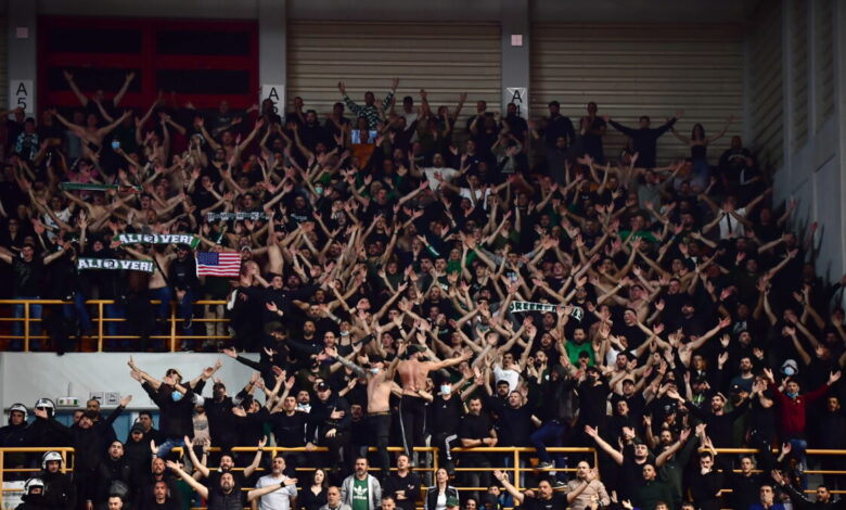 Οι φίλαθλοι του Παναθηναϊκού στο γήπεδο της Νέας Αλικαρνασσού/ (ΔΗΜΗΤΡΗΣ ΜΠΙΡΝΤΑΧΑΣ / EUROKINISSI)