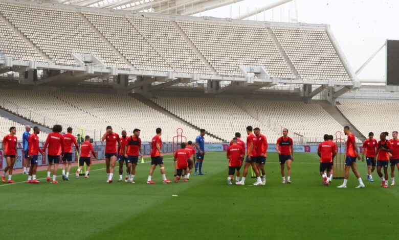 Ολυμπιακός: Η τελευταία προπόνηση πριν τον τελικό του Κυπέλλου Ελλάδας στο σκεπασμένο από την αφρικανική σκόνη ΟΑΚΑ