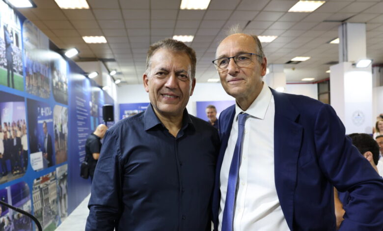 Ο Γιάννης Βρούτσης μαζί με τον Βαγγέλη Λιόλιο στη Ρίγα για την τελετή ανάθεσης του Eurobasket 2029