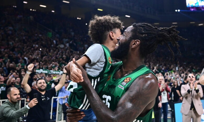 Ο Ματίας Λεσόρ με τον γιο του σε αγώνα του Παναθηναϊκού (ΓΙΩΡΓΟΣ ΜΑΤΘΑΙΟΣ / EUROKINISSI)