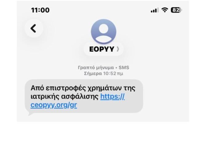 Αναλυτικά, τα εν λόγω μηνύματα υπόσχονται επιστροφή χρημάτων στους παραλήπτες, ενώ εμφανίζονται ως ειδοποιήσεις που προέρχονται από τον ΕΟΠΥΥ.