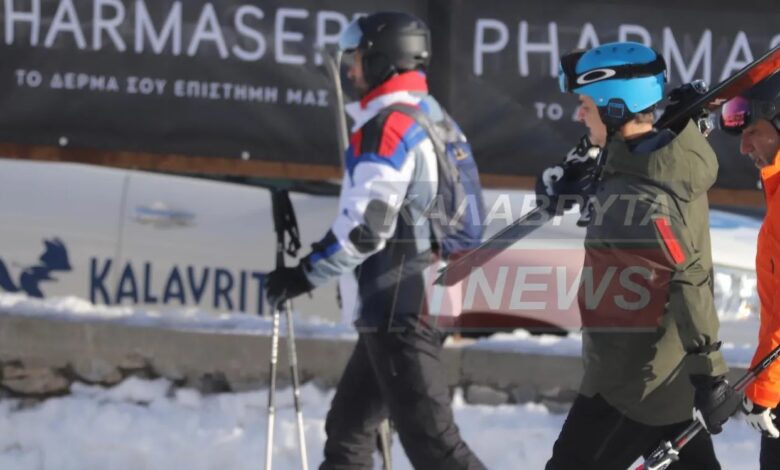 Ο Κυριάκος Μητσοτάκης στο Χιονοδρομικό Καλαβρύτων με χιονοπέδιλα και selfies με πολίτες