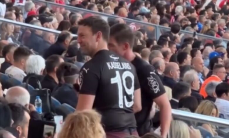 Ο Στέφανος Κασσελάκης με τον Τάιλερ Μακμπέθ πήγαν με φανέλες του ΟΦΗ στον τελικό του Κυπέλλου Ελλάδας
