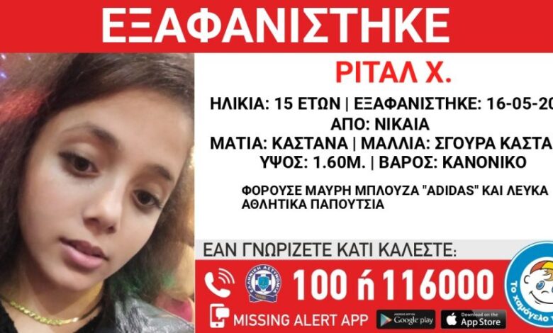 Η 15χρονη Ριτάλ Χ. όπως αναφέρεται σε σχετική ανακοίνωση εξαφανίστηκε στις 16/05/2025.