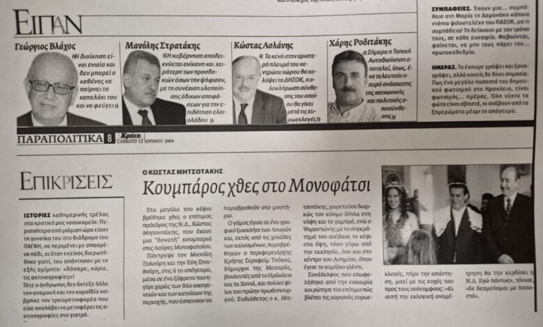 Όμως, ο Νίκος Ανδρουλάκης επανέλαβε τον ισχυρισμό του και στη Βουλή και μάλιστα κατέθεσε και σχετικό δημοσίευμα στο οποίο απεικονίζεται ένας Μανόλης Ξυλούρης με τον αείμνηστο πατέρα του πρωθυπουργού Κωνσταντίνο Μητσοτάκη. Κατά τον πρόεδρο του ΠΑΣΟΚ ο γαμπρός της φωτογραφίας είναι αδελφός του «Φραπέ».