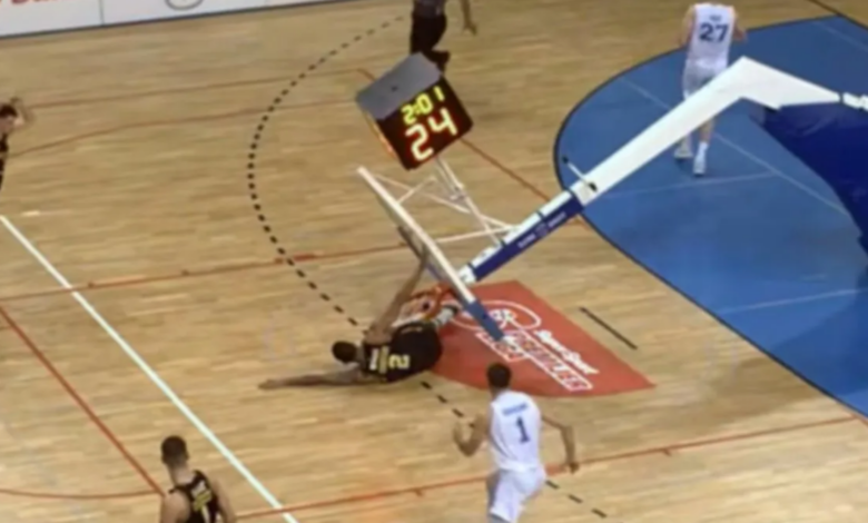 Η στιγμή που η μπασκέτα πλακώνει τον παίκτη της Σπλιτ