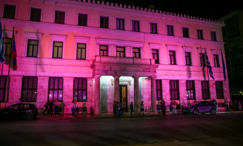 Ροζ φωταγωγήθηκε το Δημαρχείο της Αθήνας για τον μήνα του καρκίνου του μαστού