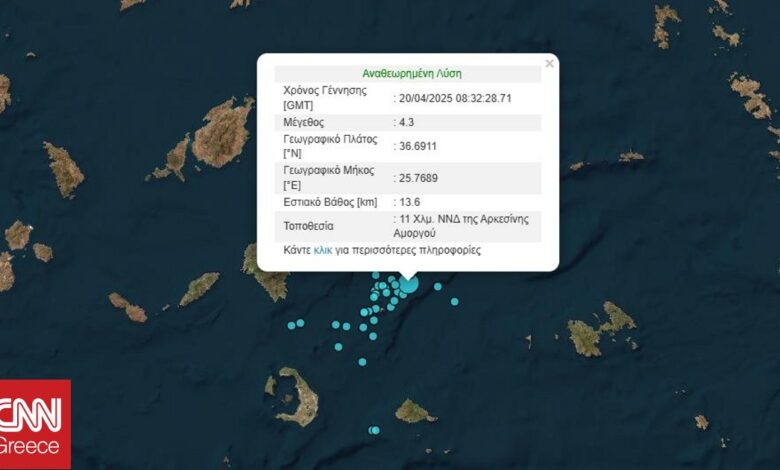 Σεισμός 4,3 Ρίχτερ, σημειώθηκε το πρωί της Κυριακής του Πάσχα, 10 χλμ νότια νοτιοανατολικά της Αρκεσίνης Αμοργού.