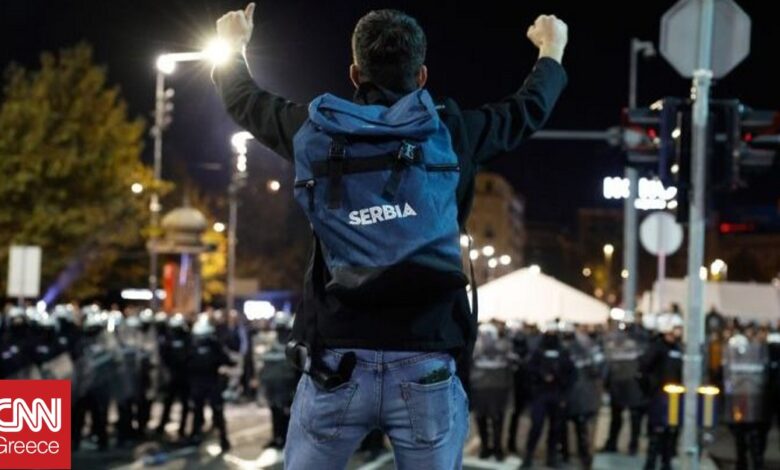 Η ένταση προκλήθηκε όταν υποστηρικτές του Αλεξάνταρ Βούτσιτς, από τον καταυλισμό που στήθηκε πριν από οχτώ μήνες, στην λεωφόρο μπροστά από το κοινοβούλιο, εκτόξευσαν αντικείμενα και φωτοβολίδες προς το σημείο όπου βρίσκονται πολίτες που συμπαραστέκονται στην Ντίανα Χρκα.