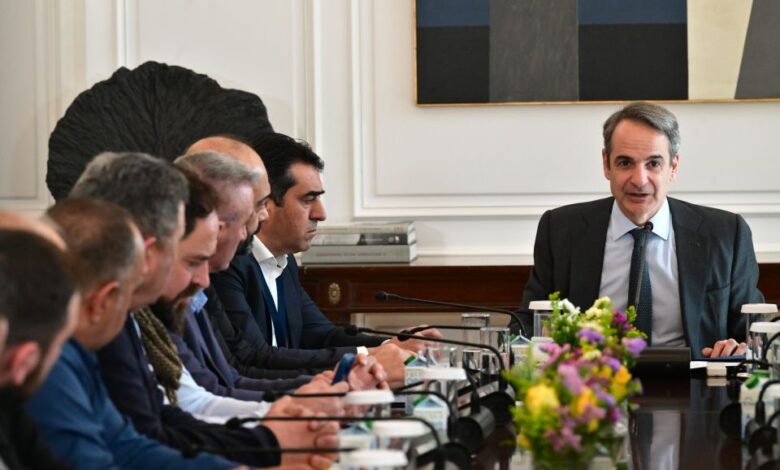 Σε εξέλιξη η συνάντηση του Μητσοτάκη με εκπροσώπους κτηνοτρόφων στο Μαξίμου